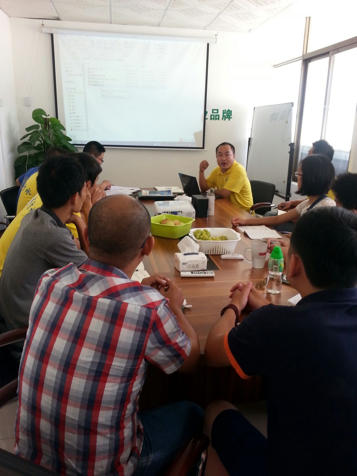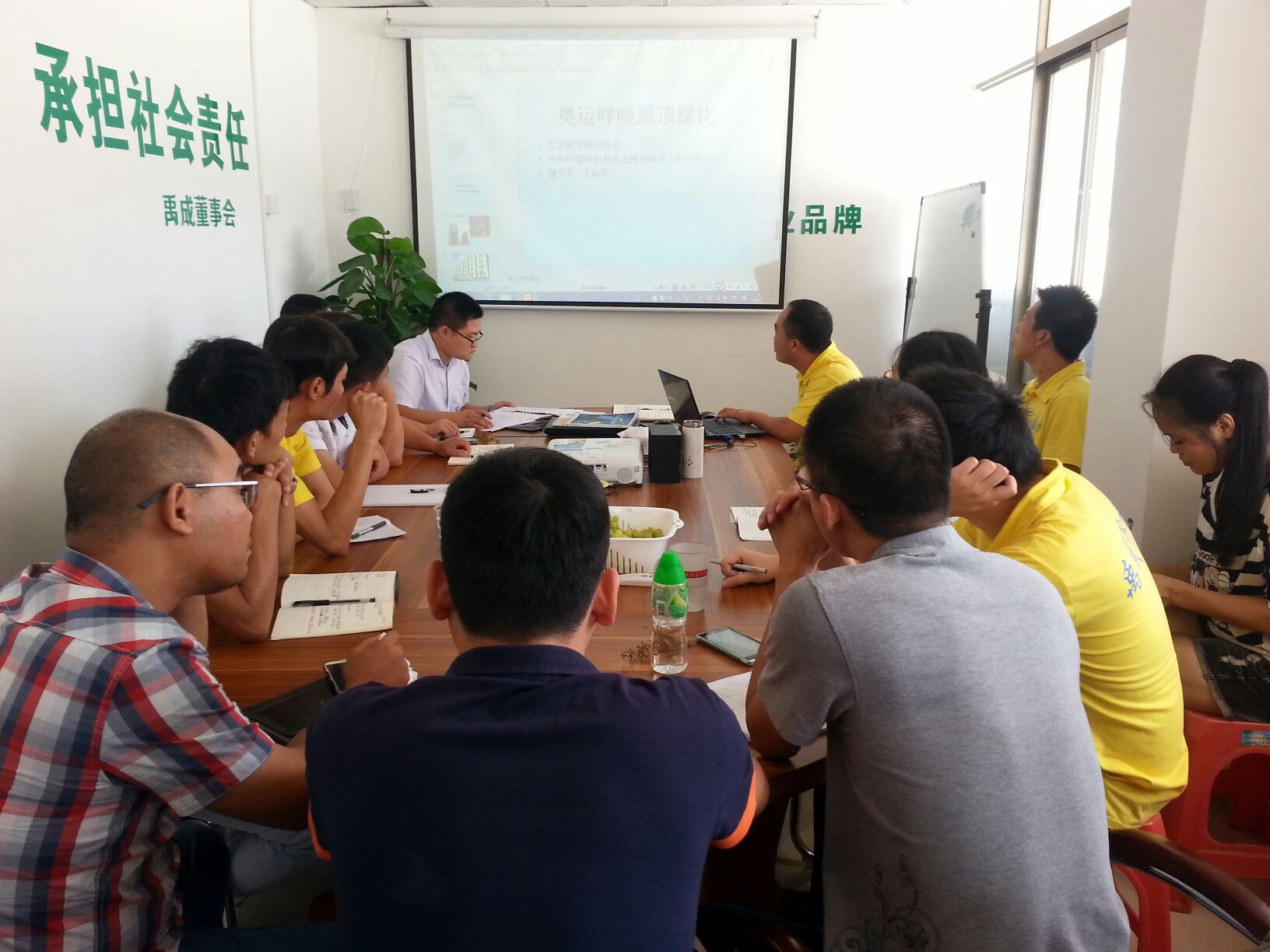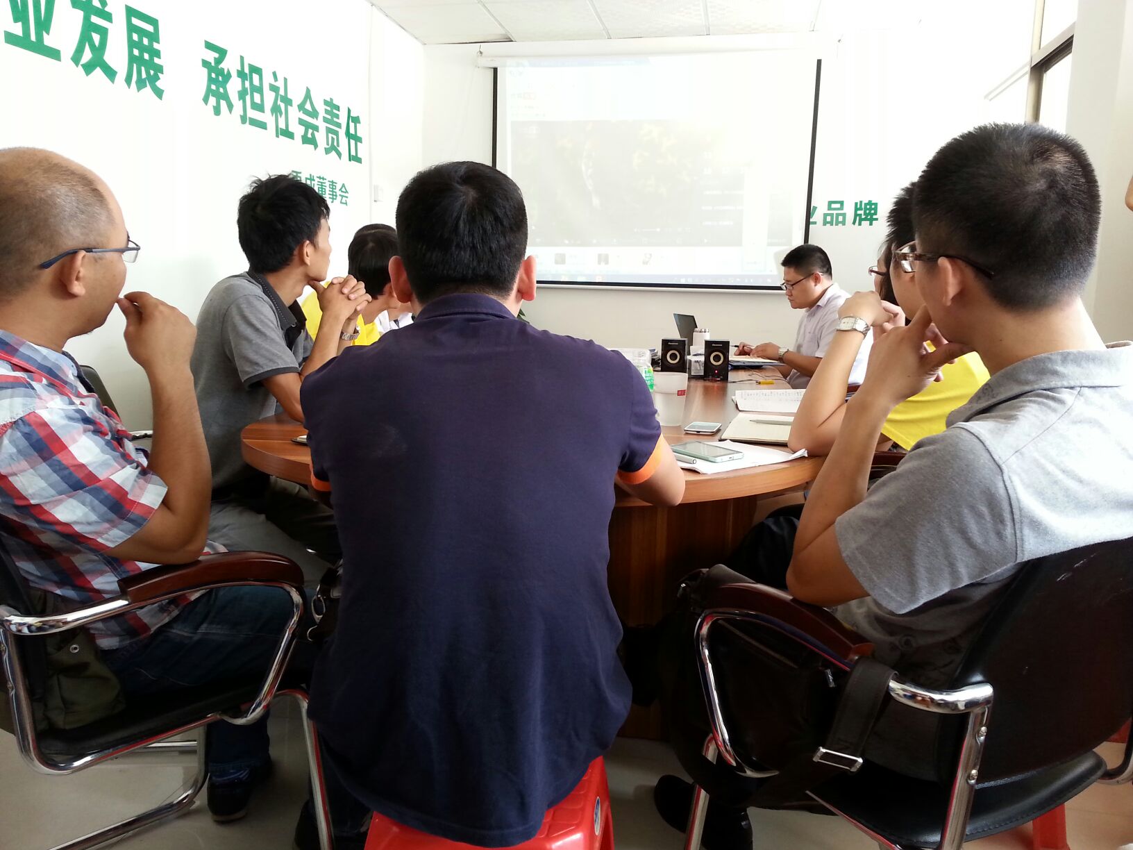短暫休息過后,我們果香四溢、歡聲笑語聲中迎來總經(jīng)理張總為大家?guī)砹恕毒G色環(huán)保建材專業(yè)知識(shí)》的培訓(xùn)。張總指出:我們現(xiàn)在生活在汽車尾氣、大量空調(diào)排放、溫度的升高等空氣污染的城市里,對(duì)所有人的身體都會(huì)一定的傷害,所以大家應(yīng)該盡自己的責(zé)任,控制污染源,保護(hù)我們的生活環(huán)境。控制污染的方法就是綠色環(huán)保,在我們防水行業(yè)漏水、掉磚的現(xiàn)象隨處可見,對(duì)我們的環(huán)境及安全有一定的隱患,所以建筑防水貼磚是建筑安全的一部份。